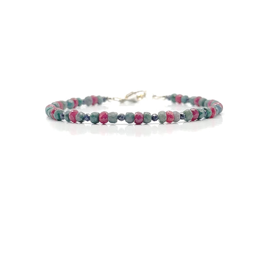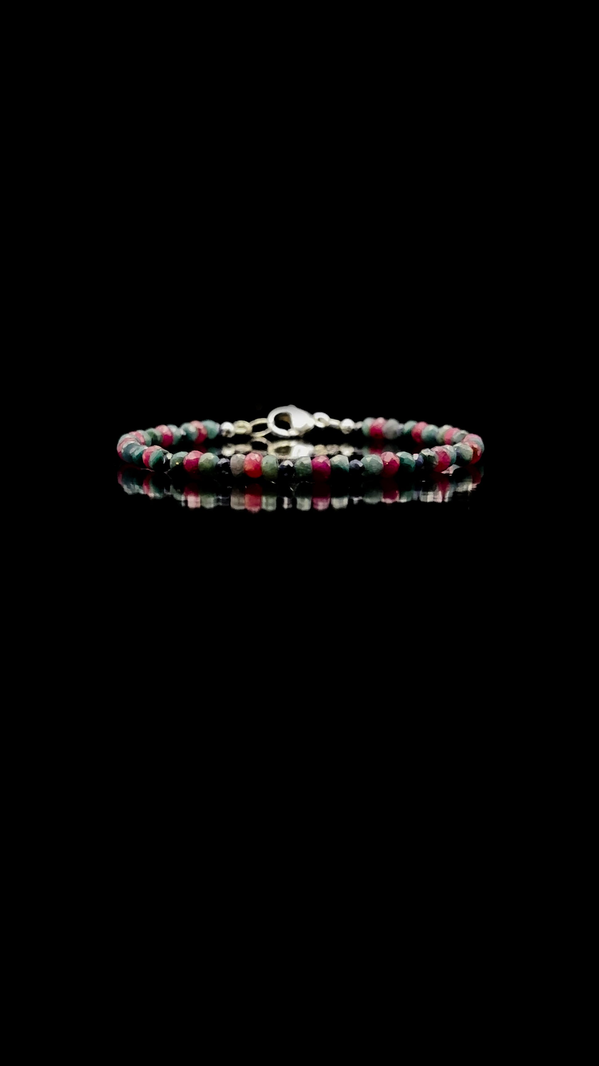 Beautiful multifaceted Emeralds, Rubies, and Sapphires.